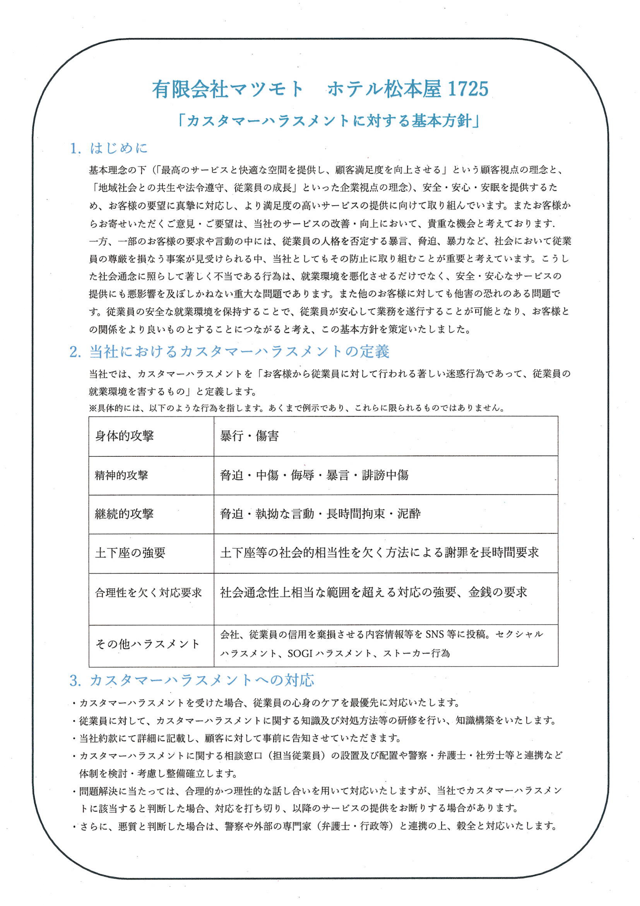 当館におけるカスタマーハラスメント防止の基本方針につきまして以下の通りお知らせいたします。